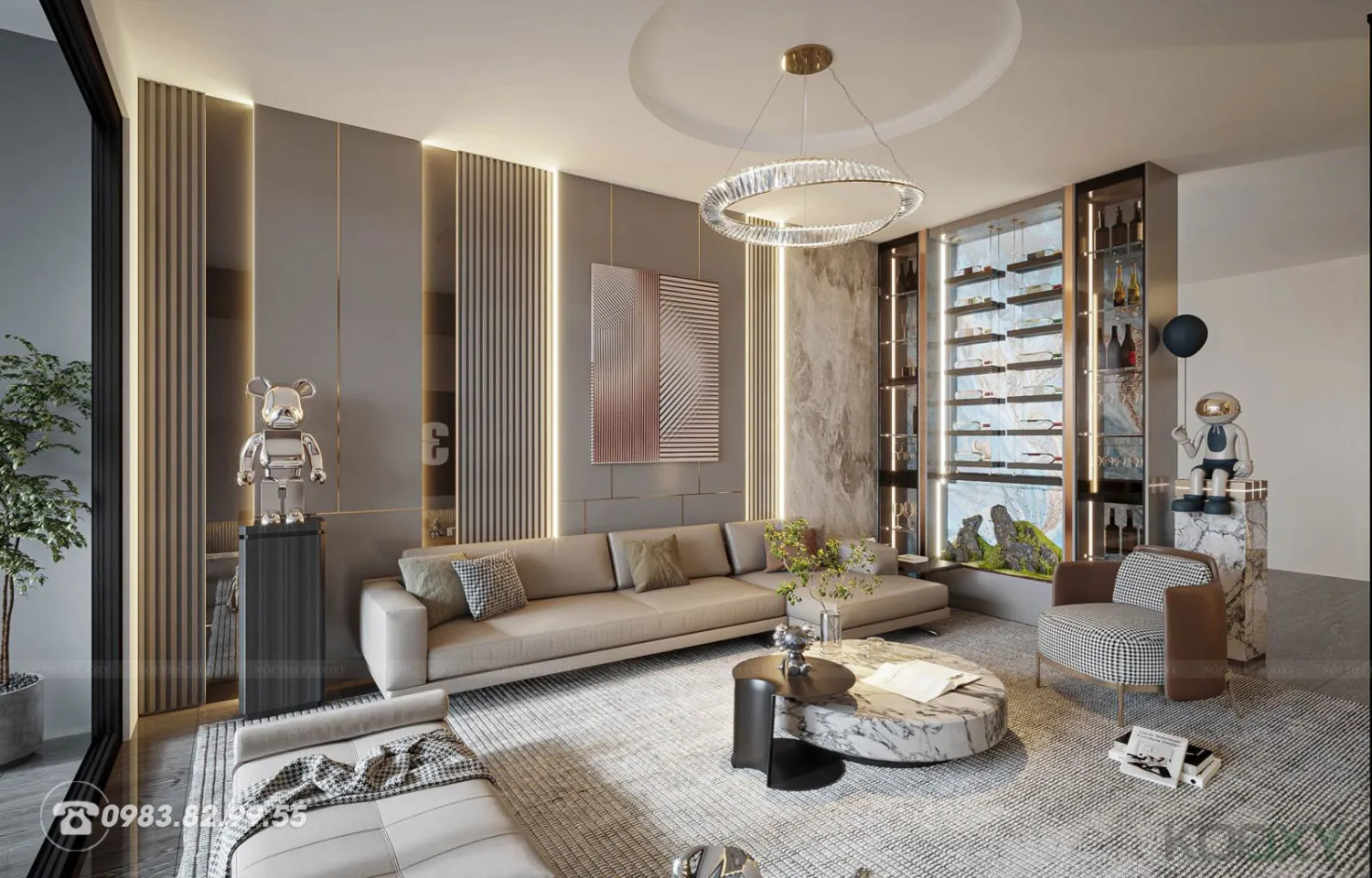 Mẫu thiết kế nội thất vách ngăn phòng khách sang trọng, hiện đại tại Hải Dương